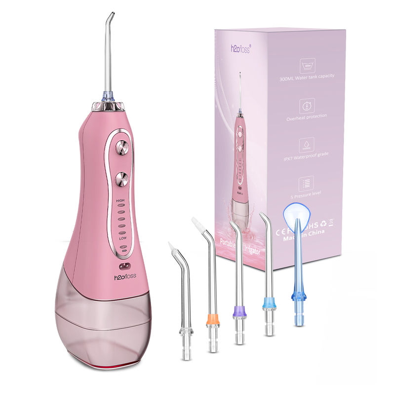 O flosser de água está equipado com 5 modos de pressão de água, incluindo Low (40psi), Soft (60psi), Medium (70psi), Strong (90psi) e Super High (140psi).Tem 5 pontas de jato profissionais, permitindo-lhe personalizar a intensidade da pressão da água para satisfazer as suas necessidades específicas para várias aplicações.
